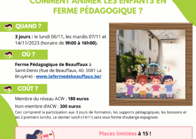 Ces documents sont la propriété d’Accueil Champêtre en Wallonie et ne peuvent être diffusés sans son autorisation.